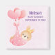 Un imán de aviso con una adorable ilustración de un pequeño conejito bebé marrón que lleva una corona dorada diminuta. Transportado por globos en una manta de corazón rosa.