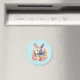 Imán con imagen de acuarela. Un conejo gris blanco rodeado de una guirnalda de rosas rosadas y duraznas. Para amantes de los conejos y temas de Pascua y cumpleaños y fiestas.