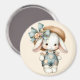 Este diseño original se caracteriza por un conejo blanco irresistiblemente adornado con bonitos overoles de denim, adornado con parches de tela pastel y emparejado con una mullida blusa. El gorra de paja del conejito, de gran tamaño, con una cinta azul de ensueño y un delicado grupo de flores dibujadas a mano, añade un toque rústico vintage. Las texturas suaves y pálidas y los colores cálidos y mullidos realzan la estética nostálgica y acogedora, perfecta para los amantes de las imágenes dulces inspiradas en el libro de cuentos. Los ojos expresivos y el suave rubor le dan a este conejito una personalidad de lo más sentida, lo que lo convierte en una encantadora adición a los temas del vivero, la decoración de primavera o los regalos de temporada. La IA generó obras de arte.