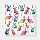 Conejos acuarelas en diversos colores, zanahorias, humor de Pascua, fondo personalizado.