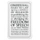 El texto de la Primera Enmienda a la Constitución de los Estados Unidos (primer artículo de la Carta de Derechos de los Estados Unidos) protege las libertades fundamentales: libertad de religión, libertad de expresión y libertad de reunión pacífica (el derecho a protestar o manifestarse). El color de fondo azul se puede personalizar según el color que elija.
