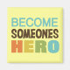 El mensaje inspirador dice "Conviértete en alguien héroe" en camisetas, bolsas, imanes, botones, tarjetas, pegatinas, llaveros, almohadas, botellas de agua y más. Siendo la mejor persona que puedes para los que te admiran, a tus hijos, a tus estudiantes, a tus hermanos pequeños, o quizás esforzándote por hacer lo mejor que puedas y ser un héroe a los ojos de alguien que ni siquiera conoces.