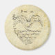 En el fondo de un pergamino, un inusual manuscrito de música medieval en forma de corazón, la oda de Cordier a uno que es "Bonne, belle, et sage", que es francés para "bueno, encantador y sabio".