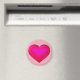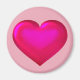 Este imán tiene un corazón de color rosa claro con un aspecto de cristal sobre un fondo morado.