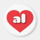 Este imán presenta un corazón rojo vibrante que contiene letras fundas al, audaces, blancas y bajas, una versión lúdica de la abreviatura de Alabama, el estado martillo amarillento. ¡Roll Tide!