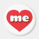 Este imán presenta un corazón rojo vibrante que contiene las letras fundas negrita, blanca, redondeada y baja, una abreviación divertida para el estado de Maine, el estado del pino.