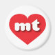 Este imán cuenta con un vibrante corazón rojo que contiene las letras negrita, blanca, redondeada de funda inferior mt, una abreviatura divertida para Montana, el estado del tesoro.