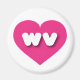 Este imán presenta un corazón rosa claro y vibrante que contiene las letras fundas más bajas, redondeadas, blancas y atrevidas, wv, una versión juguetona de la abreviatura de Virginia Occidental, el estado montañoso.