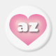 Este imán tiene un corazón tranquilo, fresco y recogido de color rosa con un centro blanco lavado que contiene letras negrita, redondeadas, blancas y bajas fundas az, una versión lúdica de la abreviatura del estado de Arizona, el estado del Gran Cañón.