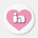 Este imán tiene un corazón tranquilo y fresco de color rosa que contiene las letras negrita, blanca, redondeada y baja de la letra funda, una abreviatura juguetona para Iowa, el estado de halcón-ojo.