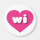 Este imán presenta un corazón rosa vivo y vibrante que contiene las letras negritas, redondeadas, blancas y bajas del funda wi, una versión juguetona de la abreviatura de Wisconsin, el estado del badger.