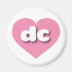 Este imán presenta un corazón rosa claro y vibrante que contiene las letras negrita, blanca, redondeada de funda inferior dc, una abreviatura juguetona para el Distrito de Columbia.