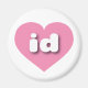 Este imán tiene un vibrante corazón rosado que contiene el negrita, blanco, redondeado de las letras fundas inferiores, una abreviatura juguetona para Idaho, el estado de la gema.