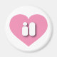 Este imán cuenta con un vibrante corazón rosado que contiene las letras fundas más bajas redondeadas, en negrita, blancas, una abreviatura divertida para Illinois, el estado de la pradera.
