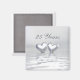 Imán con mi obra de arte de color plateado de dos corazones de plata flotando en el agua. El texto del personalizable dice "25 años".