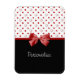 Un imán giratorio con corazones rojos bonitos y puntas de polka de moda. Personalice agregando su nombre. ¡Perfecto para un chica adolescente con estilo y diversión! La imagen es plana sin adornos literales.