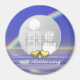 Un imán fotográfico con el diseño de dos corazoncitos dorados flotando en el agua. El texto del personalizable dice "50 Aniversario".
