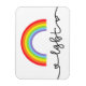 Esta obra de arte muestra una mano dibujada a mano ondeando una colorida bandera arcoíris.