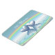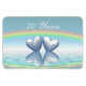 Magnet con mi diseño pastel de dos corazones platinados flotando en el agua bajo un arcoiris. El texto del personalizable dice "70 años".
