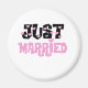Texto rosa y negro con el diseño de corazones rosas Sólo camisetas casadas, bolsas de té, tazas, pegatinas, botones, tarjetas, imanes y más, ¡perfecto para la nueva novia!