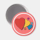 Este diseño presenta 3 corazones en amarillo, azul y rojo. Un contorno negro está en los corazones. Hay una variedad de flores rodeando los corazones. Disponible con un fondo blanco o rosa. También se agregó un borde blanco o rojo. Estos imanes están disponibles en diferentes formas y tamaños.