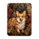 Diseño encantador con un bonito perro de Corgi galés Pembroke en un jardín de flores inspirado en el estilo de William Morris.