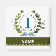 Una delicada corona de hiedra con un lazo a rayas azules está superpuesta sobre un fondo blanco fresco. El diseño apropiado para la boda presenta la inicial "I" en azul. El imán se puede personalizar con cualquier nombre sobre la cinta verde. Consejo de diseño: para la fuente que se muestra aquí, use mayúsculas para el nombre.