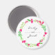 Imán Corona floral rosa elegante con nombre blanco de l