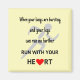 Correr es un deporte difícil. Necesita aptitud, determinación y sobre todo CORAZÓN. Mantén ese pensamiento delante de ti en todo momento. Este texto inspirador está escrito con letras negras sobre un fondo crema con la débil silueta de un corredor.