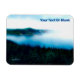 La niebla oscurece en parte tanto el bosque como el mar en un día gris y nublado en la costa de Terranova. Añade tu propio texto.