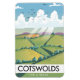 Cotswolds por un descanso. Hermoso estilo vintage de viajes afiche de arte de un avión rojo grande de estilo retro que sobrevuela el paisaje.