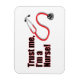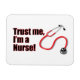 Divertido imán leyendo Créeme soy una enfermera y un gran estetoscopio. Chiste médico gracioso.