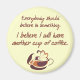 "Todos deberían creer en algo. Creo que tomaré otra taza de café". ¡Una graciosa cita de tazón de café perfecta para cualquier amante del café! Elegante texto de estilo manuscrito sobre una imagen estilizada de una taza de café humeante y un grano de café en morado y marrón.