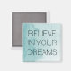 Cree en sus sueños cita inspiradora o personalice su imán en el grano azul
