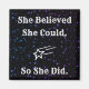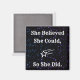 "Ella Creía Que Podía Así Que Lo Hizo" Inspirando La Cita De Fuerza De Las Mujeres. imán inspirador para las niñas para el frigorífico, taquillas de la escuela, cajones, etc. Diseño de galaxias en blanco y negro.