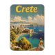 Una vibrante y nostálgica representación de Creta, la isla más grande de Grecia, celebrada por sus diversos paisajes y su rico patrimonio cultural. El diseño presenta la espectacular costa de la isla, con aguas cristalinas y playas doradas, ruinas antiguas como el Palacio de Knossos y pueblos con encanto como Chania y Rethymnon. La obra de arte, de estilo vintage, capta la belleza intemporal de la isla y su ambiente acogedor, invitando a los espectadores a explorar sus lugares históricos y su esplendor natural
