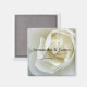 Exquisito imán boda de rosa blanco crujiente personalizado con sus nombres y fecha.