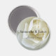 Atractivo imán boda de rosa blanco crujiente personalizado con sus nombres y fecha.