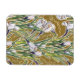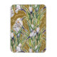 Imán con diseño floral botánico, elaborado a partir de un boceto de vida dibujado a mano. Hermosas flores primaverales - crocos blancos con hojas verdes frescas sobre fondo marrón dorado, puntos blancos salpicando a su alrededor. © Clipso-Callipso / Julia Khoroshikh