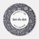 Delicados dibujos de flores botánicas en blanco sobre un fondo de pizarra gris oscuro para una moderna atmósfera floral. Magnífica coordinación Guardar los imanes de fecha como un práctico recordatorio para sus invitados. Cambie el texto para que se adapte a su celebración.