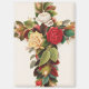 ..., roses, floral, flowers, cross, jesus christ, christian, crucifix, religion, chromolithograph print, lithograph, religious, God, christianity, red, white, gold, green leaves, petals, stately, elegant, sophisticated, chic, formal