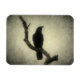 Una silueta de cuervo elevada en un árbol.