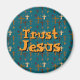 Imán de cruz cristiana “Confía en Jesús” verde dorado. ¡Disfruta!
