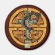 Un adorno celta redondo y tradicional como fondo con una cruz de piedra celta y un dragón verde oriental serpenteando alrededor de ella. Un diseño de arte de fantasía único, y un gran regalo para los amantes del dragón y los fanáticos del arte de fantasía.