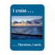Magnet expresa el sentimiento de muchos que viven (y por lo tanto deben trabajar) para viajar. Incluye una foto del velorio de un barco al comienzo de un día en el mar, y las palabras, "crucero . ... . por lo tanto, trabajo:"