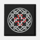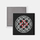 Un imán cuadrado con un diseño de nudo celta con una cruz cuadrada roja en el centro.