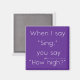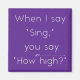 Este divertido imán dice "Cuando digo 'Canta', dices '¿Qué tan alto?" Con un símbolo 8va para el énfasis, perfecto para conductores y profesores de música.
