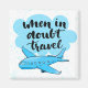 Cuando en duda viajan. Cita motivacional en fondo de nube azul con avión, tipografía de pincel para poster, camiseta o tarjeta. Arte de caligrafía vectorial. | Bigstock® - Todos los derechos reservados.