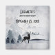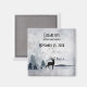 Imán de cumpleaños para guardar la fecha con una imagen de acuarela que presenta una silueta de reno negro parada entre algunos pinos. Esquema de color neutral gris, negro y blanco.