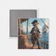 Este imán pirata presenta a un pirata parado en la cubierta de un barco pirata. Hace un gran favor para la fiesta de cumpleaños de un niño.